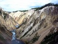 Следующая наша точка осмотра и ночевка была в центре Yellowstone парка, в большом Каньоне. Эта часть парка совсем другая, здесь протекает полноводная и бурная река "Yellowstone" со множеством водопадов и порогов, которые еще добавляют великолепия и грандиозности этому уникальному естественному сокровищу. Происхождение этих водопадов также связано с вулканическими процессами, которые происходили 640 тысяч лет назад и в результате которых потоки лавы, вырвавшейся из-под земли покрыли ту часть парка, что сейчас называается областью каньона . Гидротермическая активность лавы ослабила и разрушила камни, сделав их мягкими. Вода проникла сквозь трещины в этом мягком камне, разрушив его и пробив канал для реки. Дальнейшие разрушения камня привели к образованию порогов и водопадов. Верхний водопад, высотой 33 метра и нижний - 93 метра. Позднее, около 14 тысяч лет назад, дополнительный вклад в формирование и развитие каньона внесли ледники, растаившая вода которых наполнила реку, размыла берега и образовала эти гигантские водопады. Даже сейчас еще эта земля активна: гидротермические процессы, происходящие в земле, вода, ветра и землетрясения продолжают формировать и переделывать каньон.