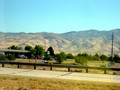 День 2. Путь наш лежал через пустыню штата Невада. Великолепное скоростное шоссе, которое проходит через всю Америку с запада на восток, постоянно поддерживается в хорошем состоянии: по дороге мы все время встречали бригады рабочих, которые либо ремонтировали куски дороги, либо расширяли шоссе, при этом нисколько не мешая движению. Шоссе действительно скоростное: разрешенная скорость 75 миль /час (120 км/час), но оно в таком хорошем состоянии, что все идут со скоростью далеко за 80-85 мл/час (т.е. 130-135 км/час). Пустыня, в противоположность своему названию, очень разнообразна, разноцветна, красива, местами просто завораживающа, особенно когда едешь в машине с кондиционером по прекрасному фривею. Холмы и дюны всех оттенков цвета от бело-желтого до почти черного то подступают к самой дороге, то уходят вдаль, уступая место ярко-зеленым оазисам вокруг небольших производственных поселении, которых по крайнеи мере на первом участке пути встречалось довольно много (один из снимков Аркадий прокомментировал как шпионский, хотя мы понятия не имеем, что именно там делается - какое-то производство). Конечно, вокруг таких заводиков есть небольшие водоемы, масса зелени, деревьев, все цветет - там совсем другой мир, отличный от окружающей пустыни, там жизнь!. Со стороны кажется, что там даже не так жарко, как вокруг, в песках. Эти оазисы возникают по обеим сторонам дороги совершенно неожиданно и очень радуют глаз. В некоторых местах вдруг вдоль шоссе появляется речка, которая тянется на несколько км - откуда? - Вопрос! Но вдоль нее тоже зелено, весело, живая жизнь! А потом опять к дороге придвигаются разноцветные холмы и ты просто видишь, ощущаешь эту тяжелую жару, пекло. Холмы в пустыне в зависимости от покрытия, освещения, расположения тучек на небе имеют совершенно разный цвет, что очень разнообразит вид пустыни (к сожалению, фотографии не могут передать всех оттенков цветов, даже если они сделаны профессионалом). Встречаются холмы, покрытые просто желтовато-зеленым травяным покровом, на некоторых почему-то вдруг растут деревья, создавая полное впечатление лесов, причем даже есть очень густые темно-зеленые леса и в таких местах холмы выглядят почти черными. Но в большинстве своем это серовато-желтые цвета разной густоты и оттенков. В некоторых местах эти горы и холмы выглядят ну просто как декорации к вестернам, так и кажется, что вот сейчас появятся на их вершинах разодетые и раскрашенные в боевые цвета и в шлемах из перьев индеицы и кинутся на проносящуюся мимо цивилизацию. Или вдруг выедут на горячих лошадях из-за холма искатели приключений и охотники за золотом - ковбои с пистолетами в обеих руках и станут мочить друг друга без разбора! Воображение разыгрывается безмерно при взгляде на эти пейзажи и сюжеты так и роятся в голове, особенно если ты не за рулем :)).