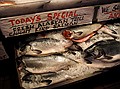 Пайк плэйс маркет ( Pike Place Market) - общественный рынок, находящийся на побережье тихоокеанского залива Эллиот , расположен в нижнем районе Сиэтла и покрывает площадь в 9 акров. Он был открыт 17-ого августа 1907 года и является одним из самых старых континентальных рынков Америки. Пайк маркет - рынок морепродуктов, сельхозпродукции мелких фермеров и ремесленников. Также выступает в роли своеобразной сцены для уличных актеров, клоунов и певцов, что, по-видимому, и является причиной его большой популярности у туристов со всего мира. Сказать, что он, и особенно его рыбный отдел, потрясает своим размером, разнообразием продуктов, их качеством (и ценой!!!), оформлением и представлением, которое устраивают продавцы - значит, почти ничего не сказать! Вокруг отдела постоянно стоит плотная толпа зрителей с фотоаппаратами (в среднем за год Пайк маркет посещают около 10-и миллионов человек.), но иногда из этой толпы выныривают и покупатели тоже. Качество продуктов настолько высоко, что даже цена не отпугивает покупателей. Даже на фотографиях видно, как красиво все оформлено и как разнообразна продукция. Периодически продавцы начинают петь сильными и красивыми голосами какие-то свои небольшие присказки-песенки, потом перекидывают друг другу огромные рыбины салмона (лосося) или большие пакеты с ракушками и креветками - зависит от того, что именно заказывает покупатель, и, что удивительно, лихо их ловят. Зрелище просто захватывает, и не хочется оттуда уходить.