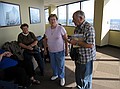Итак, по совету наших друзей и вместе с ними мы забрались на смотровую площадку самого высокого в Сиэтле здания на 72-ом этаже, и Спейс-Нидл со своими 184 метрами была где-то далеко под нами. Вид открывался действительно великолепный, мы увидели все значительные здания города, все шоссейные развязки, плавающие мосты. Очень красиво смотрелся огромный стадион из двух полукружий. Но было это ближе к вечеру, начинало смеркаться, а мы хотели еще попасть в центральную часть города на эту самую Пионерскую площадь. Так что после обзора спустившись вниз и расставшись с нашими друзьями до встречи на пароходе, мы отправились на прогулку в центр города.