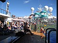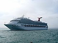 Теплоход наш назывался "Carnival Valor" и представлял собой огромный дом на воде, высотой в 12 этажей - грандиозное впечатление . Кроме того, внутри он тоже весь сверкал и был богато украшен: картины, витражи, стеклянные бесшумные лифты, ковры, удобные диваны и кресла - короче ощущение роскоши, сочетающееся с хорошим вкусом. У нас была каюта на втором уровне с окном в океан. По утрам светило солнышко, у борта плескались волны, наблюдая за которыми можно было себе представить как быстро и в каком направлении идет теплоход. Широкий подоконник позволял стоять там, опираясь на него, а вид движущейся воды просто завораживал. Мы были очень довольны, что послушались совета Валеры и взяли каюту с окном. Каюта была просторная, множество шкафов с вешалками позволили развесить все наше одежное "богатство" и переодеваться даже дважды в день. В двух шагах была комнатка со стирально-сушильными машинами, так что проблем никаких не возникло. Наши коридорные убирали каюты, по-моему три раза в день и постоянно радовали нас различными забавными зверушками, сложенными из полотенец. Ну те, кто бывал на круизах знают, как напичкан такой теплоход всякими развлечениями, какие там бывают отличные концерты, театрально-цирковые шоу, различные конкурсы, есть казино, магазины, бары, джазовые и классические вечера музыки, кофе, напитки и т.д. и т.п. И конечно, самые многочисленные развлечения на верхней палубе: бассейны, джакузи, танцевальные площадки, на огромном экране с громоподобным звуком - кино, эстрадные концерты, записи известных певцов, джазменов и пр., официанты разносят напитки - разные - и 24 часа в сутки работающий буфет - это помимо ресторанов и кафе.