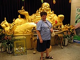 Нас встретили представители фирмы в Пекине, русскоговорящие китайцы Олег и Саша, которые в дальнейшем были гидами второй группы, и повезли прямо в ресторан ужинать. На двух последних фотографиях наш первый ресторан. У входа - огромная золоченая статуя Смеющегося Будды. Мы в нашем путешествии еще много-много раз столкнемся с разными изображениями Будды: смеющийся, задумчивый, сидящий, стоящий, лежащий, спящий, Будда нефритовый и каменный, нарисованный и скульптурный и т.д. и т.п. Буддизм - основная религия Китайцев, естественно, что он везде. Ну, об этом позже.