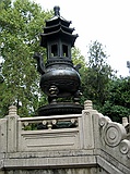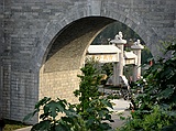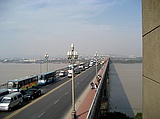 Нанкин окружает самая большая в мире городская стена. Она была построена в эпоху династии Мин (середина 14-го века) и имеет 33 км в длину и 12 м в высоту. Большая часть стены сохранилась до сих пор, но из самых первых 13-ти городских ворот сохранились только одни - ворота Чжунхуамэнь. С самого верхней площадки ворот открывается прекрасный вид на город. Нанкин, как я уже писала, стоит на берегу реки Янцзы, через которую перекинут двухъярусный мост. Его длина 1577 метров. Мост через Янцзы был жизненно необходим, чтобы связать север и юг Китая. Его строительство началось 18 января 1960 года, а было завершено 29 декабря 1968. До тех пор, пока не построили мост, приходилось пользоваться паромной переправой. Первоначально был объявлен конкурс, в котором приняло участие 200 проектов. Первое место занял русский проект, но как раз в это время отношения между СССР и КНР резко обострились, и китайским строителям пришлось полагаться на собственные силы. На каждой стороне моста находится по 4 башни, внизу проходит ж/д. ветка, а вверху автомагистраль. В середине моста на обеих его сторонах стоят скульптурные группы, изображающие рабочего, крестьянина, солдата и студентку! Не хватает только серпа и молота.