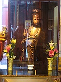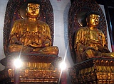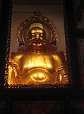 Дальше наш путь лежал в Храм Нефритового Будды - одной из самых известных достопримечательностей Шанхая. Этот храм был построен в начале века и до сих пор выполняет свои функции. Он интересен главным образом скульптурой. Храм, построенный в традиционном китайском стиле, хранит в себе драгоценные скульптуры Будды, вырезанные из целых кусков белого нефрита. Они были изготовлены в Бирме и подарены монаху с острова Путошань (один из буддийских центров Китая), который доставил их в Шанхай. Для хранения скульптур и был воздвигнут храм. Одна фигура Будды изваяна в сидячем положении (высота 1,9 м), другая изображает Будду, достигшего состояния нирваны. Здесь же хранятся 72 тома буддийских текстов Цинского периода.