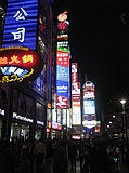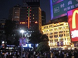 Самая знаменитая улица Шанхая - Нанкинлу протянулась от набережной на 14 км через весь город. Часть улицы является пешеходной зоной, где сосредоточены лучшие магазины, бутики и рестораны города. Все здания на этой улице отреставрированы, тем самым архитекторы воссоздали облик старого Шанхая, города начала века. Мы провели на этой улице полтора часа, разглядывая и иногда заходя в эти шикарные магазины и любуясь световой рекламой. Казалось, что все покупки уже были сделаны, ан нет! Кто-то еще докупал и тратил оставшиеся деньги. Конечно же, как во всем мире, здесь было несколько Starbucks coffee и я там хорошо отдохнула, пока Аркадий бродил по улице, фотографировал рекламы и отбивался от зазывающих к себе девушек (и молодых людей!). Нельзя ни на минуту оставить одного!