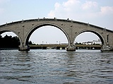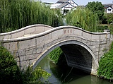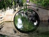 Конечно же, товарищи наши отоварились и здесь, и мы, дождавшись их, поехали дальше в город Сучжоу - город, расположенный в низовьях реки Янцзы на берегу озера Тайху. В 514 году до н. э. правитель древнего царства У приказал своему министру выстроить город, которому по красоте не было бы равных. Повеление правителя было исполнено. Так в Китае возник город Сучжоу - город парков, садов и пагод. Еще при династиях Мин и Цин город был застроен усадьбами столичных чиновников и превратился в садовую столицу Китая. Сад Скромного Чиновника, Западный сад, Сад Мастера Сетей и другие классические китайские сады - свидетельство высочайшего искусства. С возвышением Шанхая в конце Х1Х в. Сучжоу утратил значение центрального города в регионе, однако благодаря своей архитектуре, прекрасным паркам, садам, каналам и великолепному огромному озеру Тайху, он до сих пор привлекает внимание туристов со всего мира. Географическое положение города, мягкий климат, изумительные природные ландшафты - все это позволило древним прозвать Сучжоу "раем на земле". Особенность Сучжоу заключается в том, что дома одной стороной выходят на улицу, а другой - на реку. Улицы построены параллельно реке и соединяются мостами. В Сучжоу несколько сотен разнообразных мостов. Недаром город называют "Венецией Востока". Когда-то местное население передвигалось по городу в основном на джонках, но теперь это чисто туристический аттракцион, при этом гондольеры, как правило, женщины, но, к сожалению (или к счастью?) не поют! По берегам каналов тянутся хижины, крытые черепицей. В центре города их довольно активно сносят. На месте старых домов вырастают роскошные особняки.