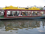 В Сучжоу мы с Аркадием решили, что пока с нас хватит торговых улиц, на которую собирались отвести всю группу после ужина, и что мы хотим просто пройтись по городу и посмотреть вечерний Сучжоу. Узнав у нашей Юлечки, как идти к гостинице, мы оторвались от группы и пошли. Это оказалось совсем недалеко, мы легко нашли дорогу и заодно посмотрели на город. Единственная трудность заключалась в том, что надо было постоянно оглядываться, чтобы на тебя не налетели велосипедисты, потому что в некоторых местах тротуара как такового просто не было. Несколько кадров вечернего Сучжоу - результат нашей прогулки. На той, где я стою у перила моста, внизу виден канал, а по бокам его широкие улицы, по которым движутся машины и сверкающий огнями рекламы город - очень красиво. Великий канал - одно из древнейших ныне действующих гидротехнических сооружений мира. В настоящее время является одной из важнейших внутренних водных артерий КНР, соединяет крупные порты страны. Протяжённость канала 1782 км. Мы прокатились по этому каналу на корабликах в пределах города, но это была просто обычная водная прогулка, во время которой коробейники опять всучили многим из нас свои товары.