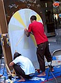 рисуют на стендах, установленнных прямо на улице. Помните, я рассказывала о рисунках на тротуаре в Лос Анжелесе?