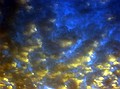 Выехала на широкую дорогу, машин мало, поскольку рождественские каникулы, многие люди гуляют всю неделю до Нового года, езда спокойная, можно поглазеть по сторонам. И вот гляжу я на небо и вижу удивительную картину: как будто смотрю на поверхность голубого моря, по которому бегут розовые барашки! Полное ощущение, что смотришь сверху вниз именно на море. На горизонте мрачноватые тучи притворяются горами. Т.е. конечно и горы там тоже есть, но граница между горами облаками скрыта за туманной дымкой и если скользить взглядом от горизонта вверх, то вдруг осознаешь, что ты уже видишь не горы, а плотные, густые облака, которые постепенно разряжаются кверху, превращаясь в те самые розовые барашки и "вода" становится все светлее и светлее. Прямо как будто меняется глубина моря.