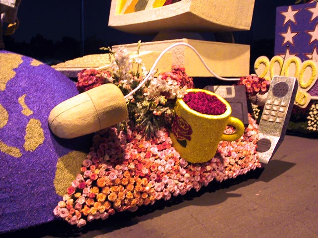 Ну как можно понять из этого снимка, было уже давно после захода солнца, т.е. по-просту темно и фотографировать оказалось в таких условиях страшно трудно. В основном, кадры оказались плохими, но парочку я приведу, чтобы показать, что все действительно было сделано из цветов, ведь здесь мы могли подойти поближе к платформам, чем на параде, правда, не ко всем: