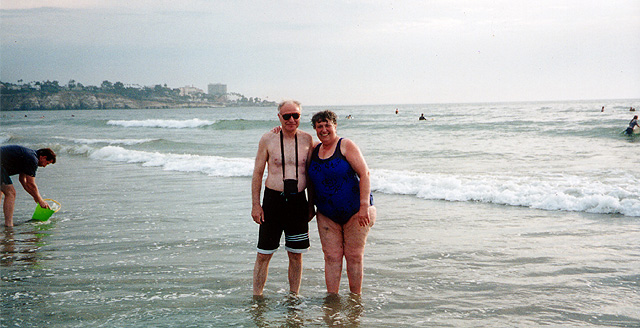 Ну вот, впечатлений осталось множество и очень приятных и не очень, но в целом все прекрасно и интересно. Мы безусловно довольны этой поездкой. Тем более, что на этом наши приключения не кончились. Мы еще много чего повидали и много где побывали. После посещения Wild Animal Park мы поехали на остров Coronado. Это сравнительно небольшой островок, на который ведет длиннющий мост прямо почти из центра Сан Диего. Остров известен тем, что на нем расположена военно-морская база, которая занимает большую половину острова и куда, естественно, свободный вход запрещен. А меньшая половина острова - это очаровательный гордок с разнообразной архитектурой очень богатых частных домов, большим количеством зелени и отличным пляжем, на котором мы не стали купаться - берегли себя до следующего пляжа - да как-то никто и не купался здесь, впрочем было не слишком-то и жарко. Городок - типично туристский центр, множество маленьких магазинчиков - но по-туристски дорогих, даже в одном турбюро Аркадий нашел служительницу, которая оформляла турпоездки в Россию и даже сама там бывала, но по-русски не говорила. Тем не менее как-то они друг друга поняли. Мы там погуляли по городу и по пляжу, посмотрели репетицию воздушного парада, который должен был состояться на следующий день по поводу праздника. Кстати, город по этому поводу был обильно украшен в основном американскими флагами и цветами. В центре было сооружено некое подобие сцены и рядов для зрителей, вроде как бывало у нас на Дворцовой во время парада, только в несколько раз поменьше. Правда, и городок - это не Ленинград (Петербург)! Потом мы там поели в небольшом кафе - довольно вкусно - и двинулись дальше по маршруту. В этом кафе запомнилась одна девчушка, лет этак меньше полутора. В длинном модном платье, с модной косынкой на головке, она на нетвердых ножках бродила по кафе, заходя иногда под столы, а иногда стукаясь об их край и, что самое замечательное - с огромной соской во рту! Она - соска - как-будто залепляла ей рот. Это был просто блеск! Очень она была самостоятельная. Мама при этом сидела в компании друзей за одним из столиков и обращала внимание на дочку только тогда, когда она норовила выйти из кафе на улицу. Уже было довольно много времени, а мы обещали вернуться в Лос Анжелес часам к 9 вечера, как раз, когда должен был прилететь Женька. На дорогу нам надо было оставить часа 2 или около того. А следующим пунктом маршрута был небольшой городок по имени La Jolla - почему-то по-русски он называется Лахойя. Нам посоветовали заехать туда, посмотреть сказочный небольшой городок с великолепным пляжем и обязательно покупаться в океане. Это была еще одна моя мечта - искупаться, наконец, в океане, потому что в Сан Франциско купаться просто невозможно, там ужасно холодная вода. Вот так и получилось, что уже 2,5 года мы здесь живем, много раз бывали на берегу океана, но ни разу еще не купались. Естественно, что мы не могли проехать мимо такого заманчивого места. Но оказалось, что к каждой поездке все-таки надо готовиться, по крайней мере заранее смотреть карту, а не пытаться ориентироваться на ходу. Потому получилось, что мы-таки попали на отличный пляж, прекрасно искупались, наконец! в океане, но городок, тот самый сказочный, не видели, потому что пляж несколько в стороне от города. Но купание было просто замечательным: огромные волны, в которые н
