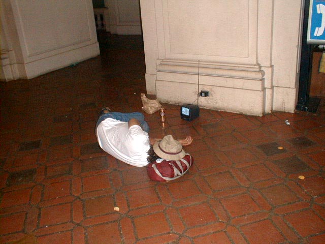 Как вы думаете, что это такое? Не буду долго тянуть: это бездомный, устроился на полу в здании City Hall'а - главного правительственного здания города - и смотрит свой маленький телевизор. И настолько он увлечен этим занятием, что даже не отреагировал ни на наш проход, ни на вспышку фотоаппарата. "Свободный человек в свободной стране" - как любит повторять мой муж. Так закончился еще один наш день в Лос Анжелесе. Следующие два дня мы были предоставлены самим себе, потому что Женька улетел домой на следующий день утром, а Гена работал. Но мы получили подробные инструкции, куда пойти и что посмотреть. Что мы и сделали. |